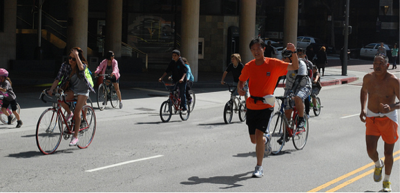 Even from 3,000 miles away, there’s a lot of ways you can help the victims of the attack in Boston. Huffington Post has a pretty good list right here. Certainly there are more concrete ways to lend aid to those attacked than being nice at CicLAvia. But the best long-term strategy to end this kind of senselessness is to create a world where we can all live, and learn, and love each other. Sunday’s car-free party is just one way to make the community of 11 million L.A. County residents just a little bit smaller. A little bit less scary. A little more unified.