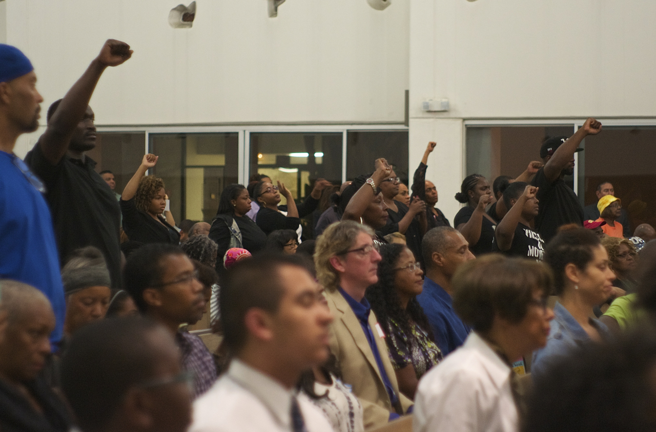 It was a claim many of the elders in the community might have disputed. Some I spoke with after the meeting were shaking their heads over the fact that they found themselves confronting so many of the very same issues they had gone up against as activists in their youth – that young men were still dying at the hands of police and there was still no accountability. And Reverend Sauls, an important advocate for the South L.A. community on a wide range of issues since arriving at Holman in 2012, had been the one to moderate a meeting between the Black Lives Matter advocates and the mayor at Holman this past July.