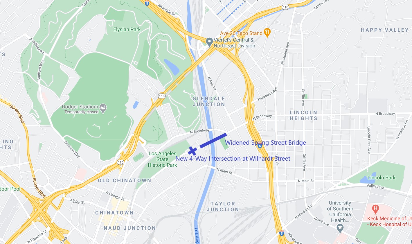 Phase II of the North Spring project includes a short (one block, ~140-foot) bikeway on Wilhardt that will connect the Spring Street bike lanes to the walk/bike path along the frontage of Los Angeles State Historic Park.
