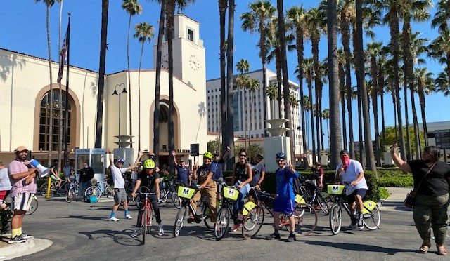 Last Saturday, Metro Bike Share workers hosted a Solidarity Ride to draw attention to their current organizing drive for union representation. About two dozen cyclists, many on Metro Bike Share bikes, made their way from Union Station to downtown’s Donut Friend, which is also the site of a similar organizing drive.