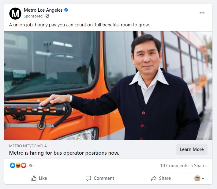 Metro Boardmember Mike Bonin recently tweeted his support for bike-share worker unionization. Metro has a somewhat complicated relationship with its unions, but the agency has certainly touted the “union job” as a positive in recent ads recruiting bus operators.