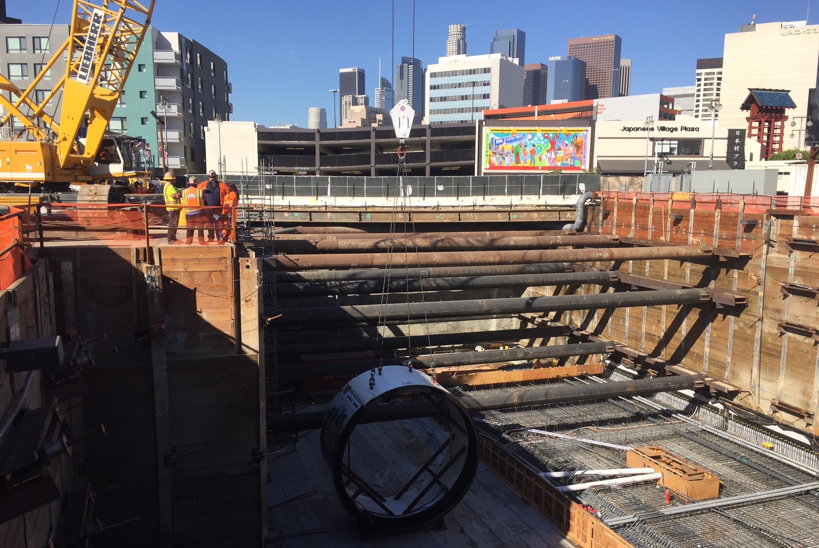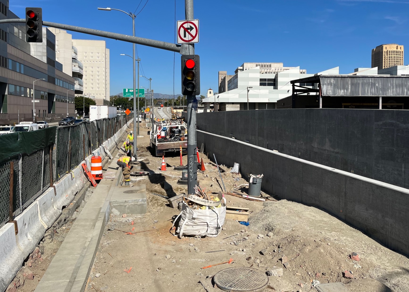 You may have heard: Metro is building new rail lines and extensions. Among the projects furthest along is the downtown L.A. Regional Connector subway. Earlier this week, Streetsblog biked around downtown checking out above-ground evidence of Regional Connector construction.