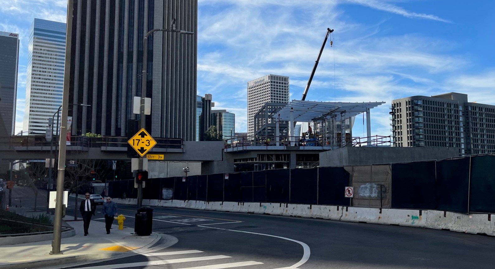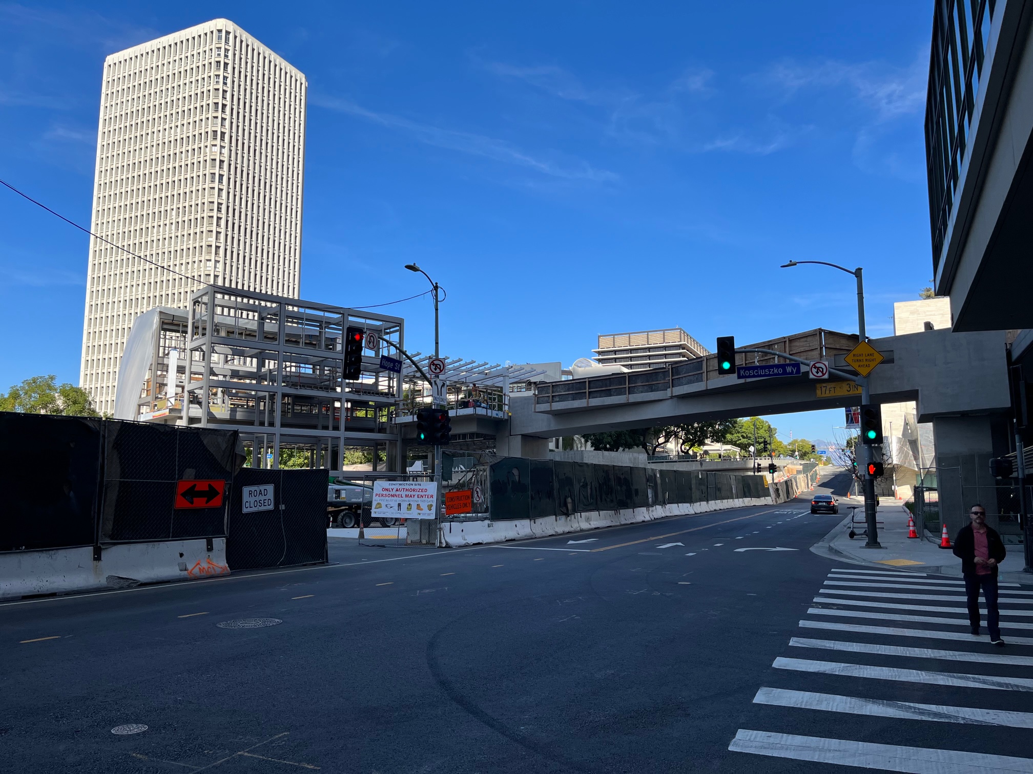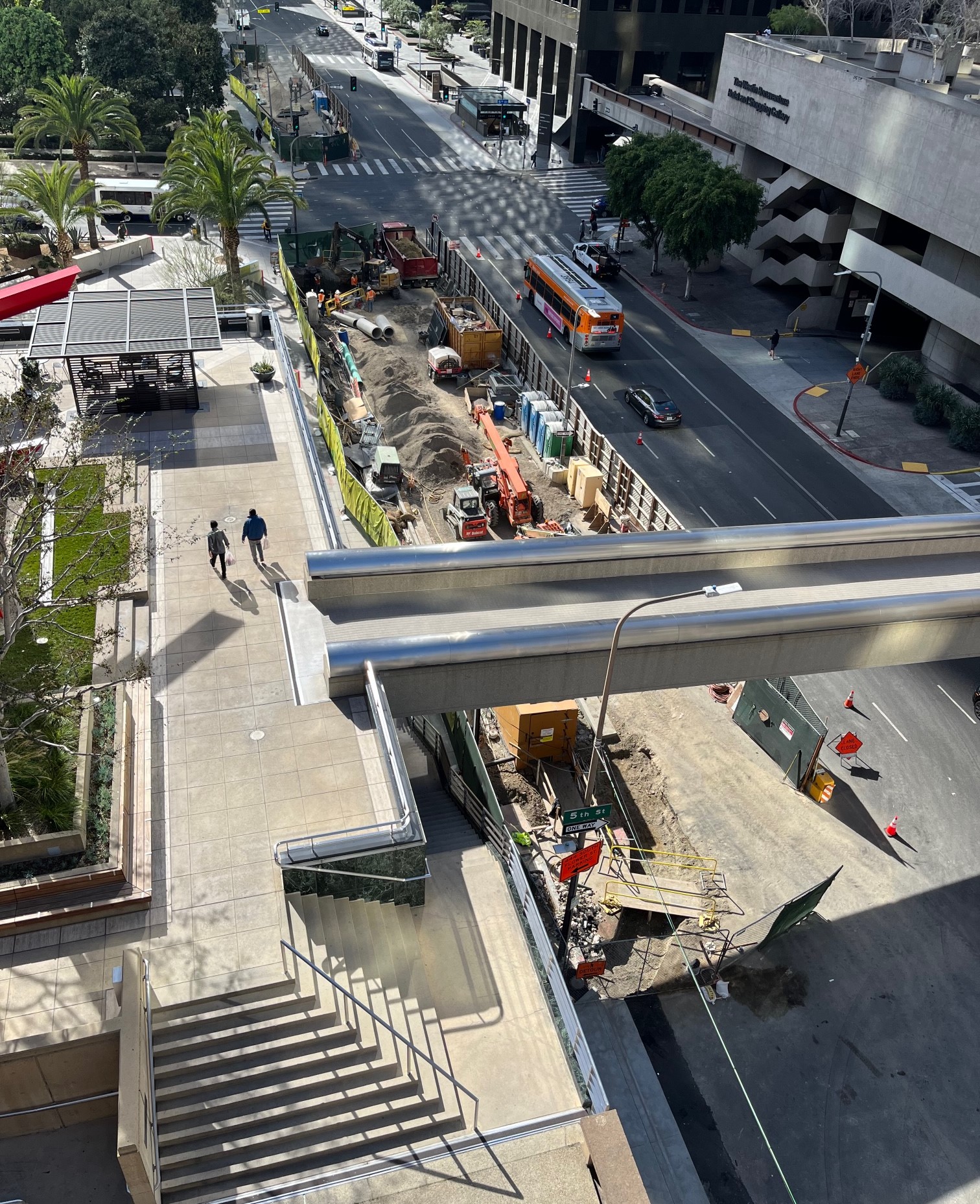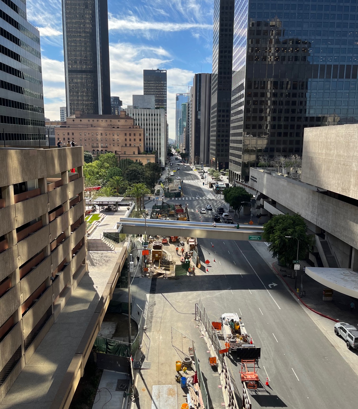 Lastly, below are two photos of Regional Connector construction wrapping up on Flower Street, where the connection to the 7th Street Station was built using the cut-and-cover method.