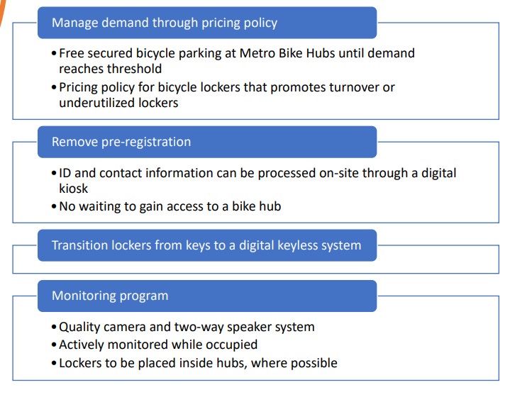 Metro is revamping its station bike parking, switching to new digital lockers. Image via Metro presentation