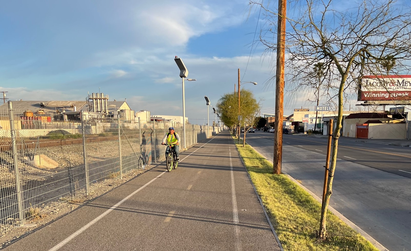 The majority of the path already has new asphalt, lighting, fencing, landscaping, and some bicycle-activated signals in place. The project also includes new crosswalks, new ADA-accessible ramps, and major traffic/railroad signal modification at twelve intersections.