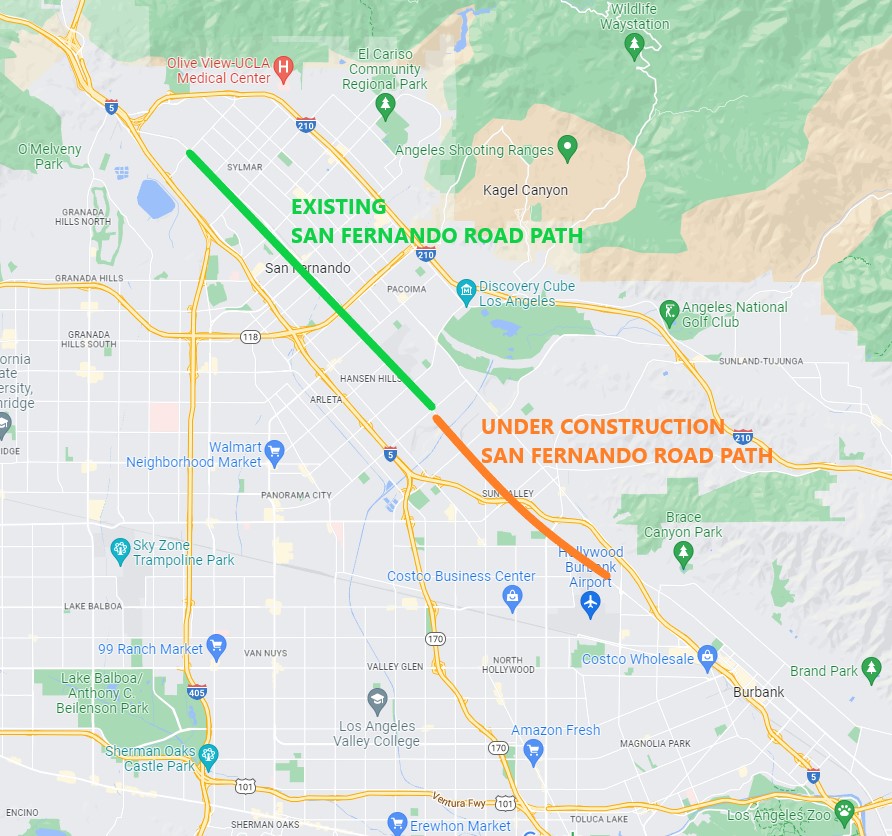 The new phase continues 4.2 miles southeast from Branford all the way to the border between L.A. and Burbank – at the Burbank Airport North Metrolink Station. When complete, the path will extend a total of ten miles!