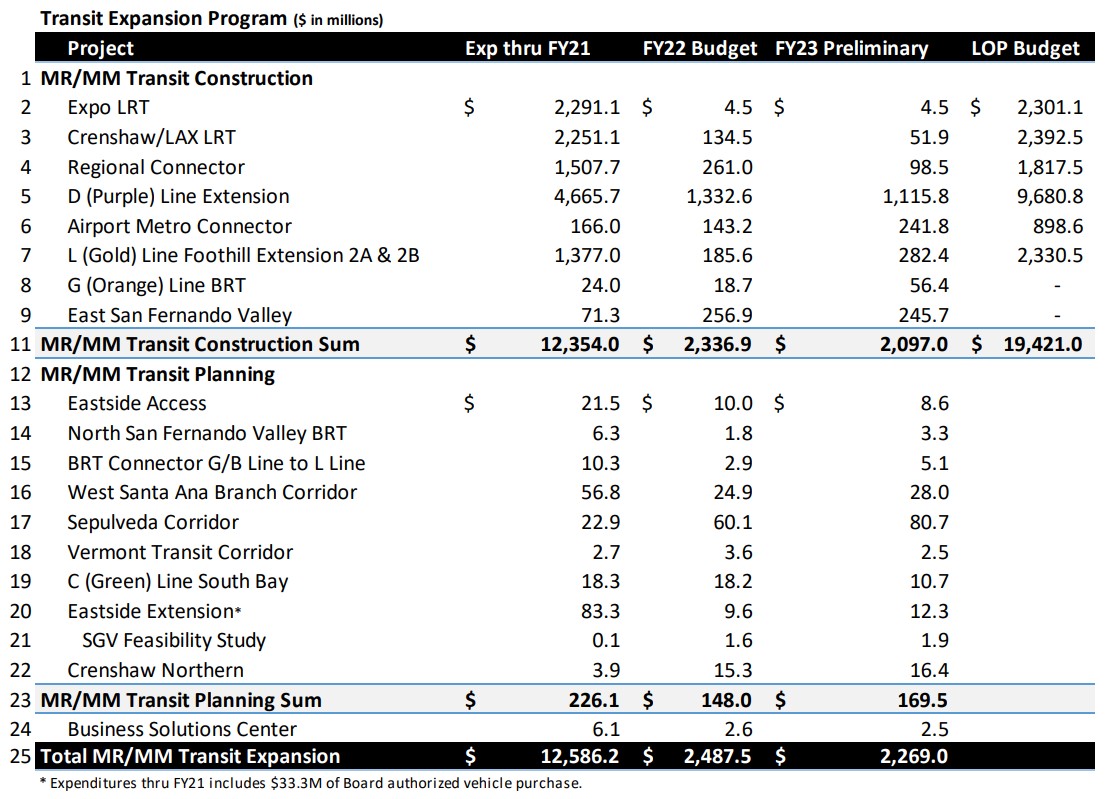 - There are small discrepancies in approved budgets, revisions, and what gets spent. SBLA has used the most recent figures this editor could find, which can sometimes be slightly different than later-revised actuals, but the final amounts are within a couple percent of what is shown above. Find approved budgets at Metro budgets webpage.