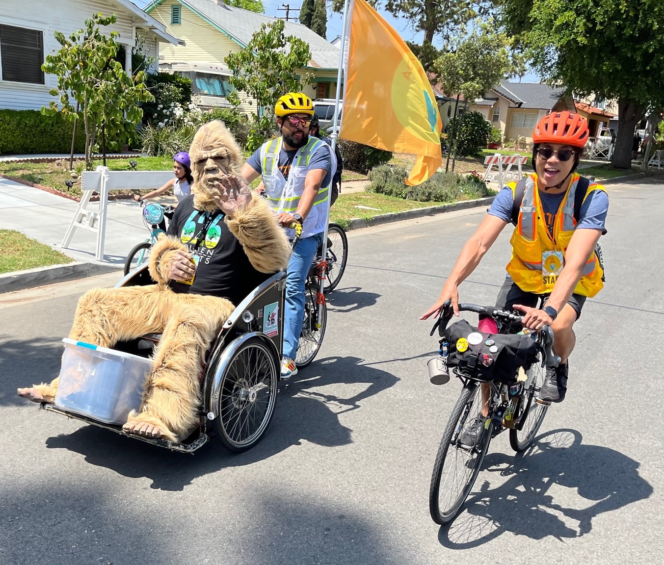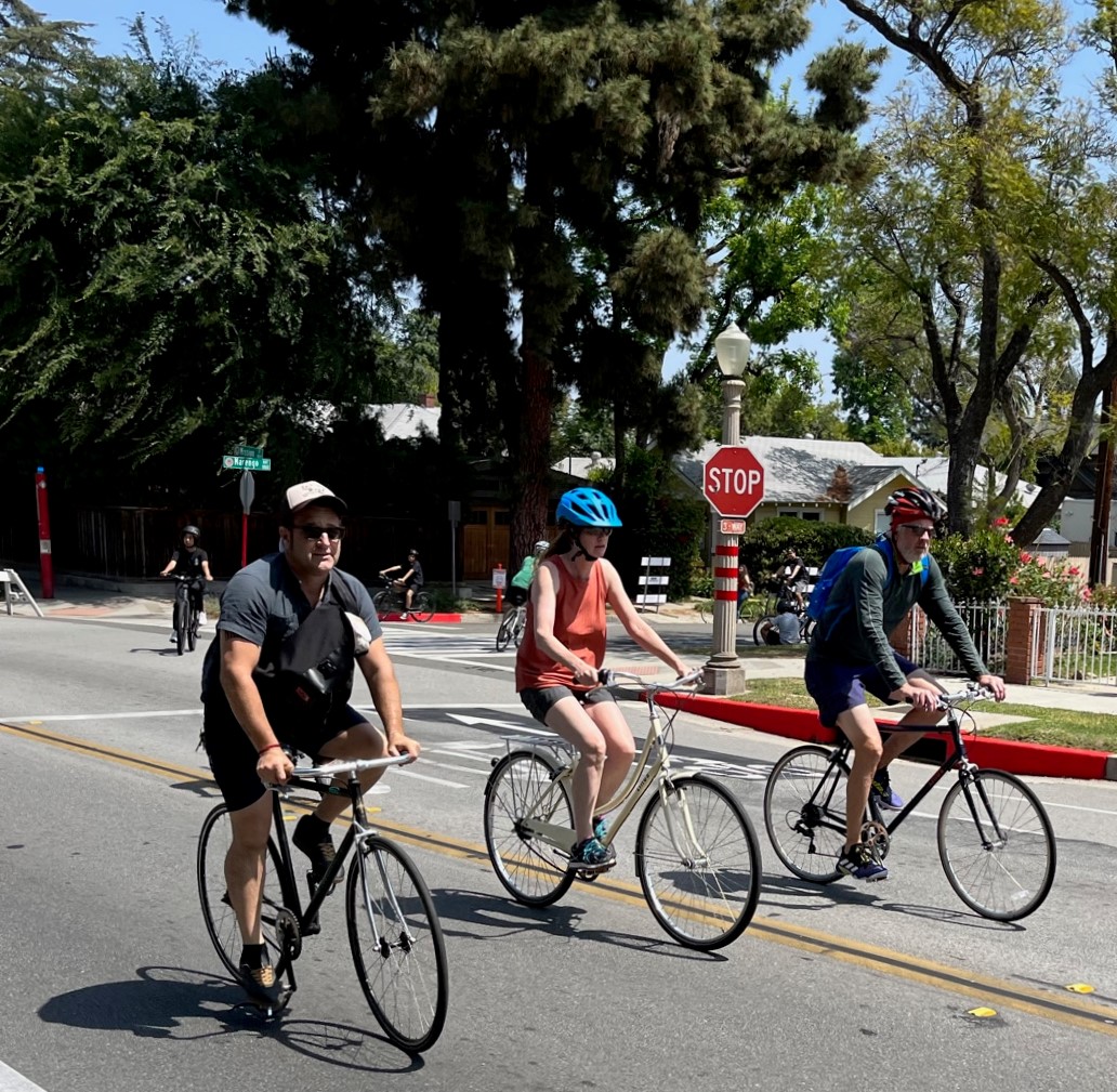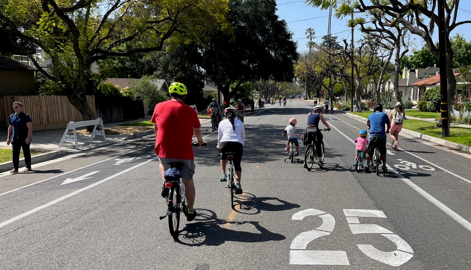 Yesterday, the cities of Alhambra, San Gabriel, and South Pasadena combined with ActiveSGV and Metro to host 626 Golden Streets Mission to Mission. This was the first San Gabriel Valley open streets event since these popular festivals were canceled/postponed at the start of the COVID pandemic in early 2020. Tens of thousands of attendees biked, skated, scooted, walked and ran – to enjoy five miles of car-free streets. Lots of families, including young kids with training wheels made their way along beautiful tree-lined streets.