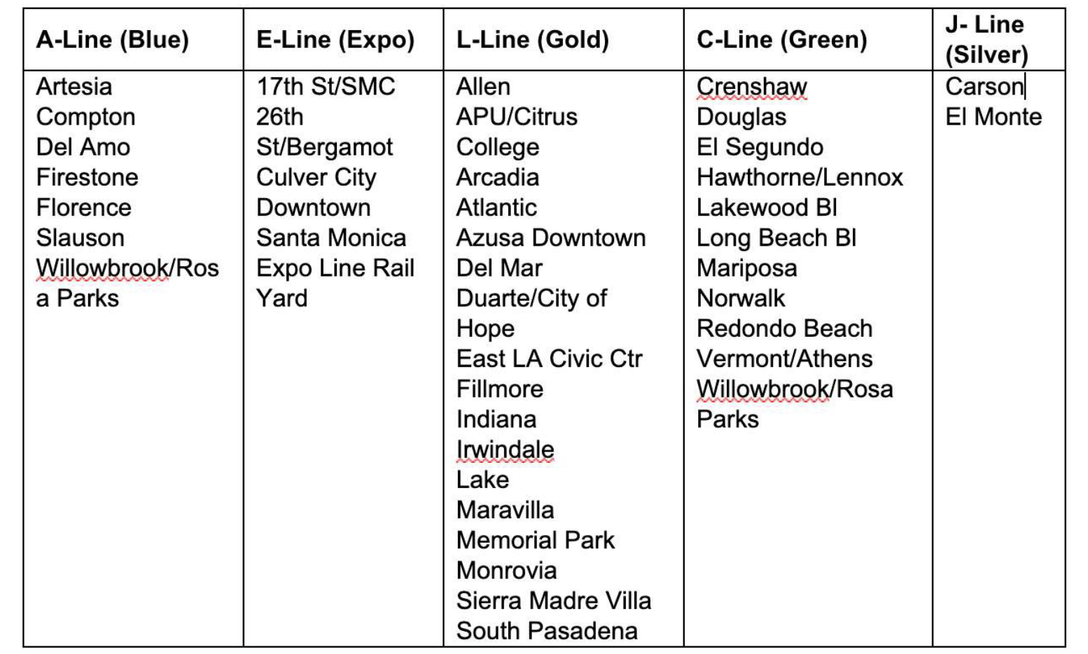 The sheriff provides a number of services (responding to 911 calls, patrolling buses, providing Mental Health Evaluation Teams (METs), etc.), all of which Metro relies on to respond quickly to emergencies and to limit interruptions to transit service. LASD also patrols the trains and stations listed at right.