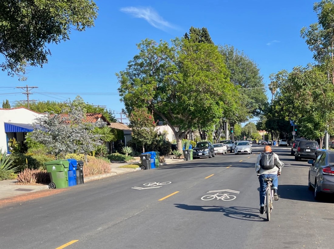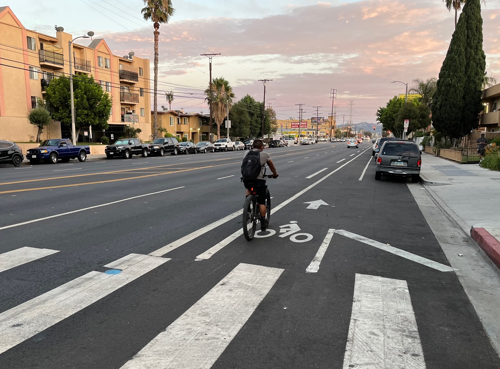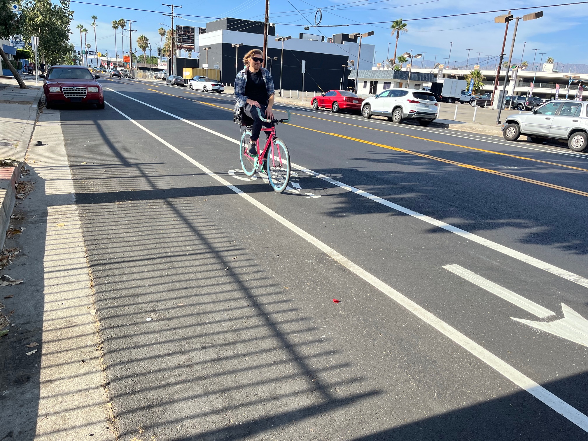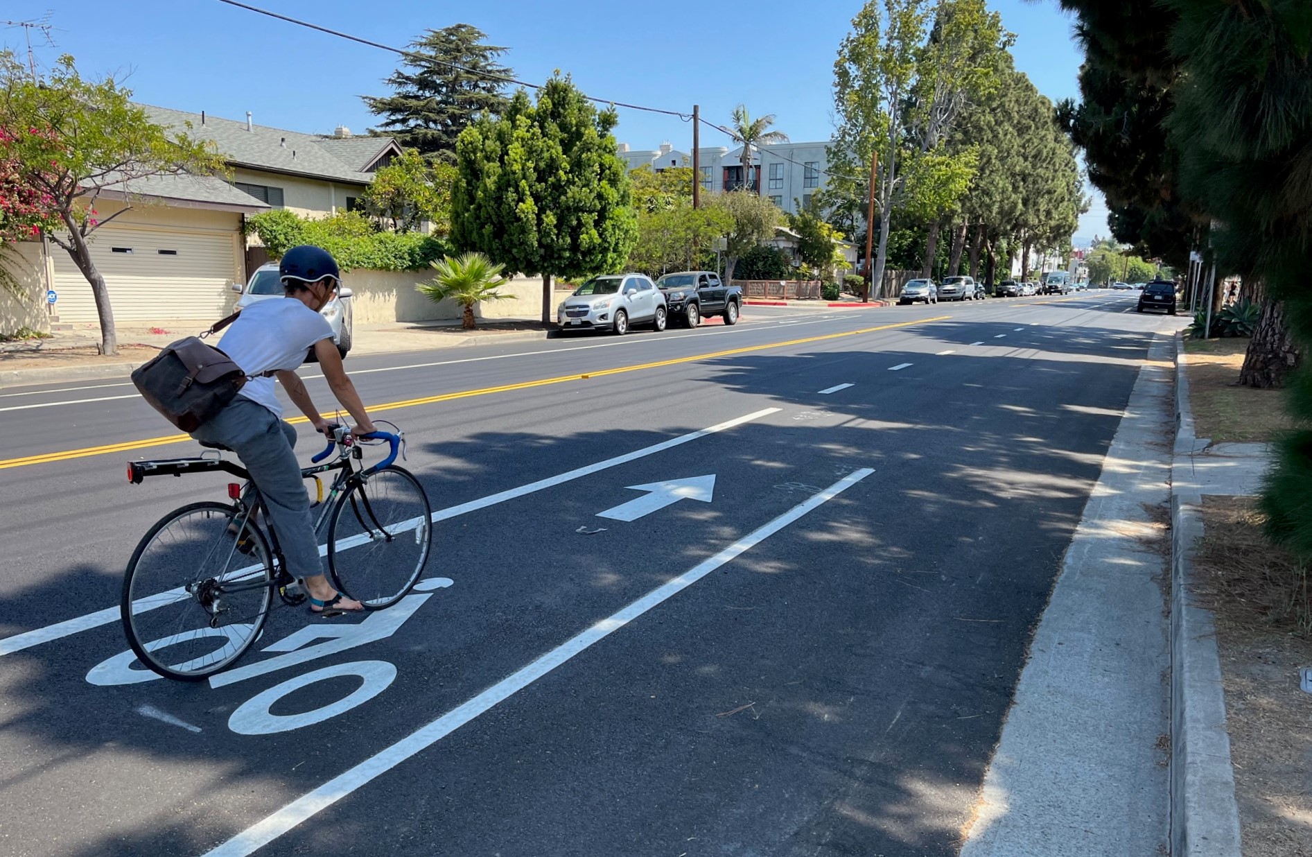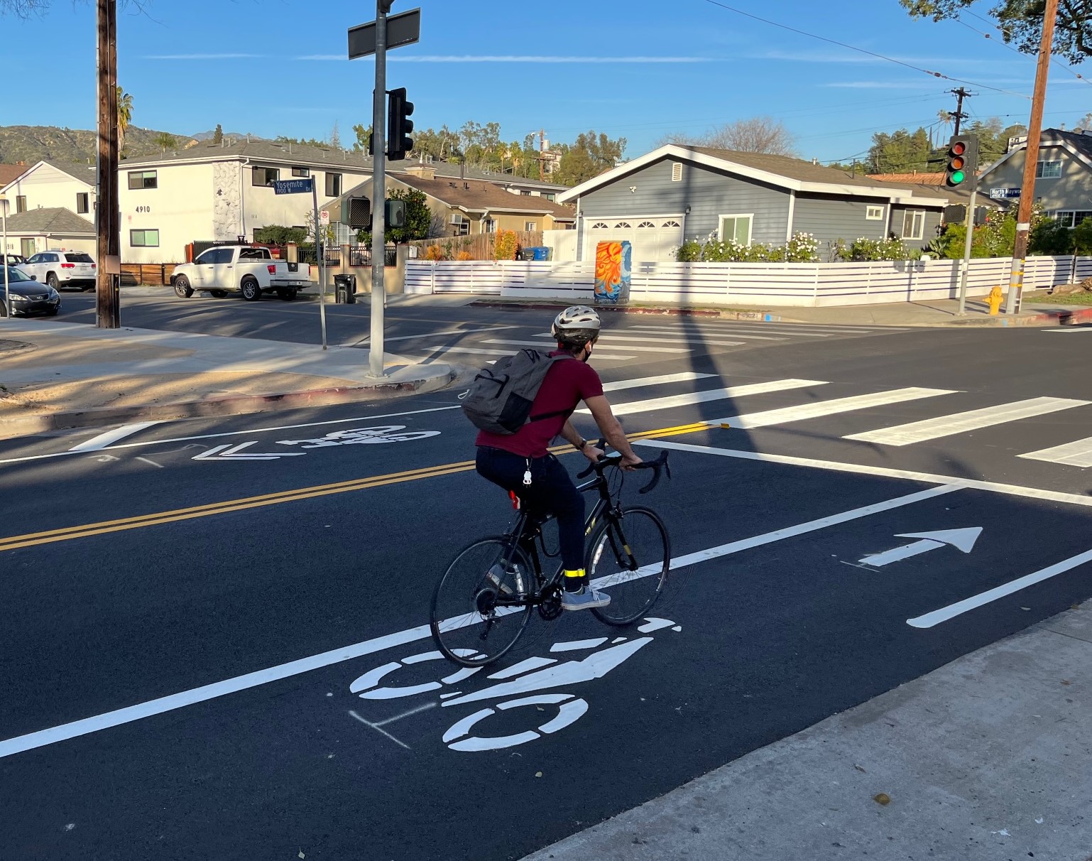 A few other new bike lanes were more opportunistic – worthwhile, but mostly adding bikeways on wider streets where space permitted (as opposed to where lanes might be more needed): Bellevue Avenue, Brookhaven Avenue, Idaho Avenue, and La Tuna Canyon Road.
