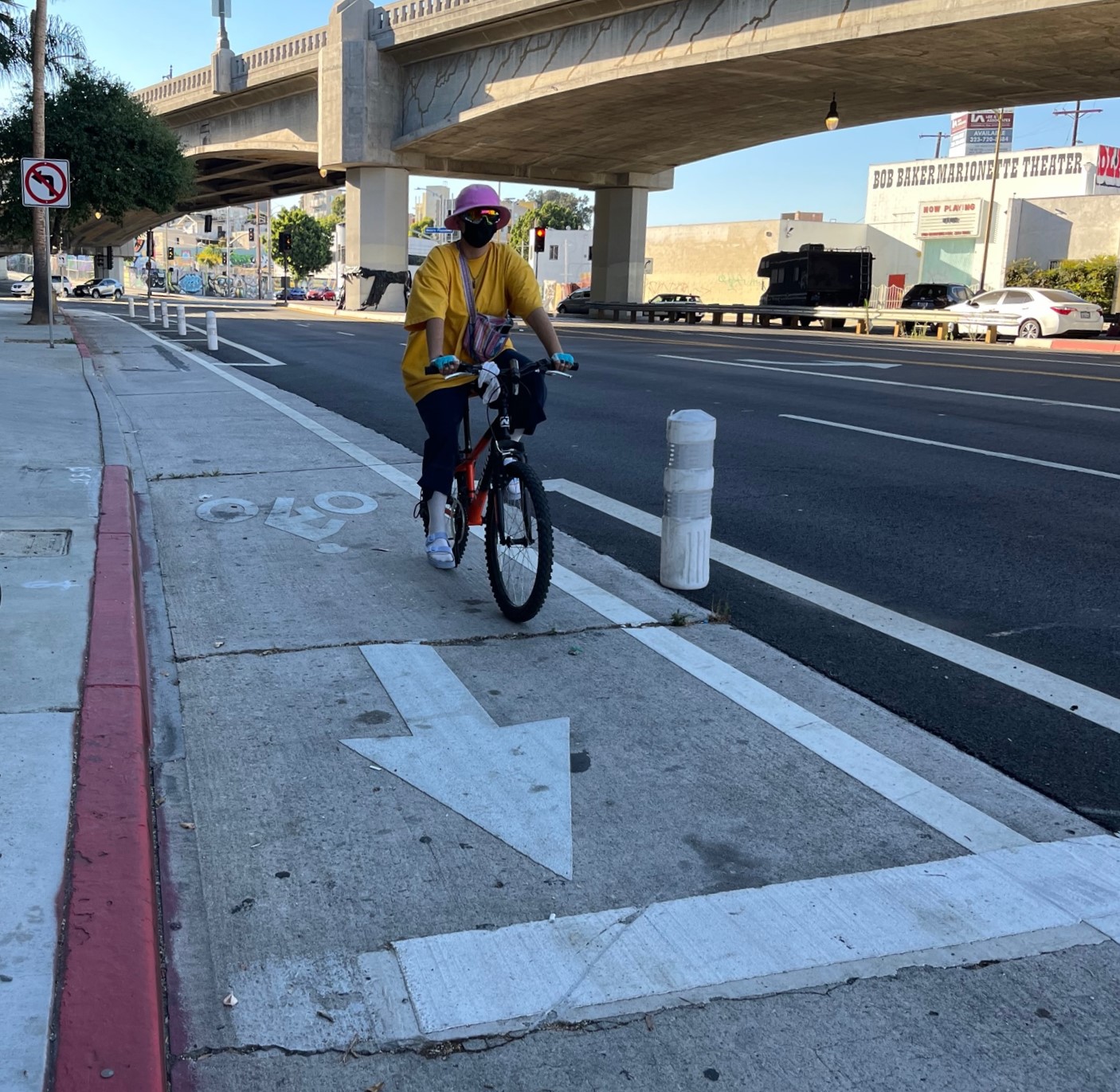LADOT expanded the city’s nascent protected bikeway network with new protected bike lanes installed on 1st Street, Airport Boulevard, Grand Avenue, and Riverside Drive, and new protection added to existing bike lanes on 2nd Street, Manchester Avenue, Sherman Way, and Winnetka Avenue.