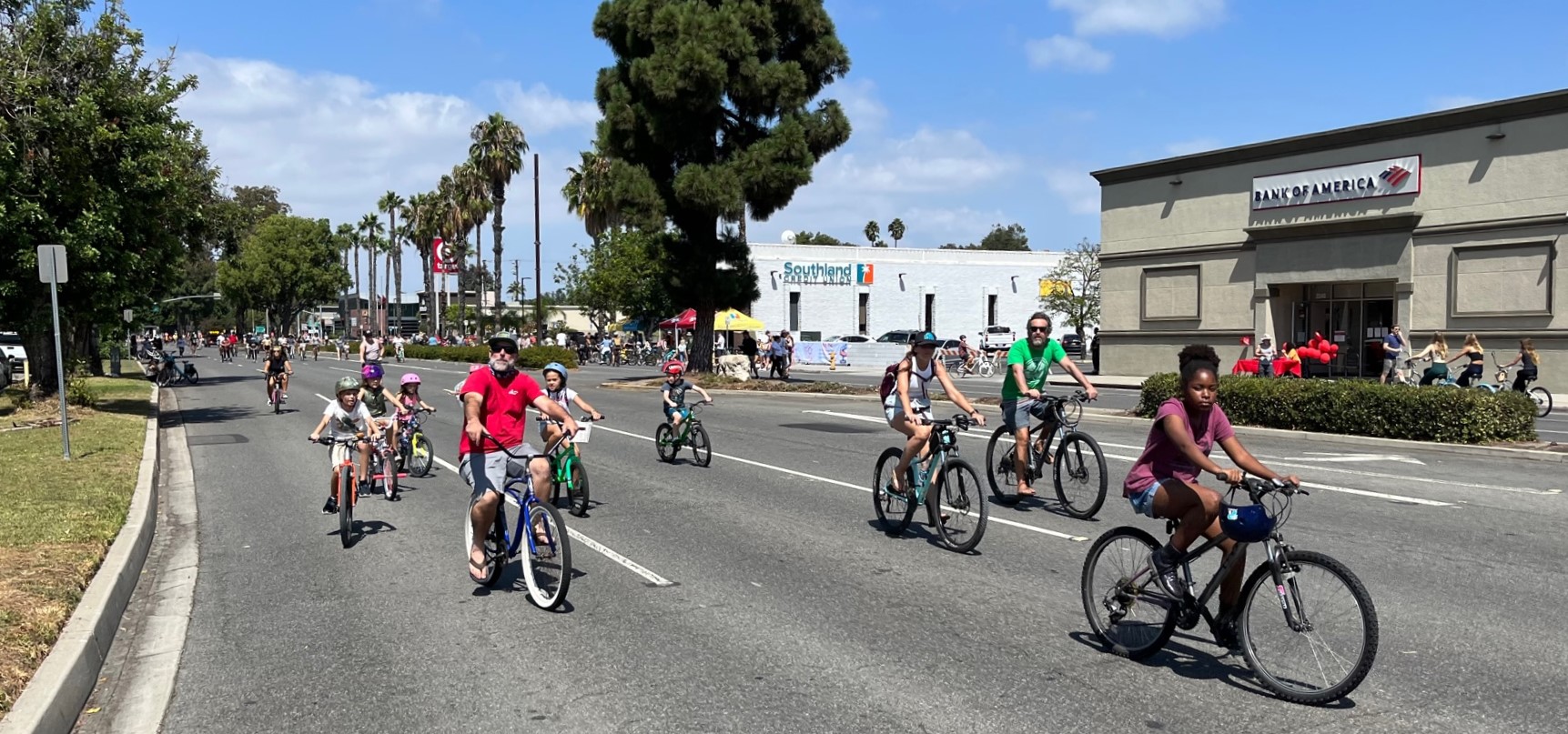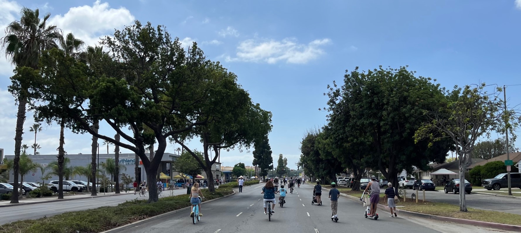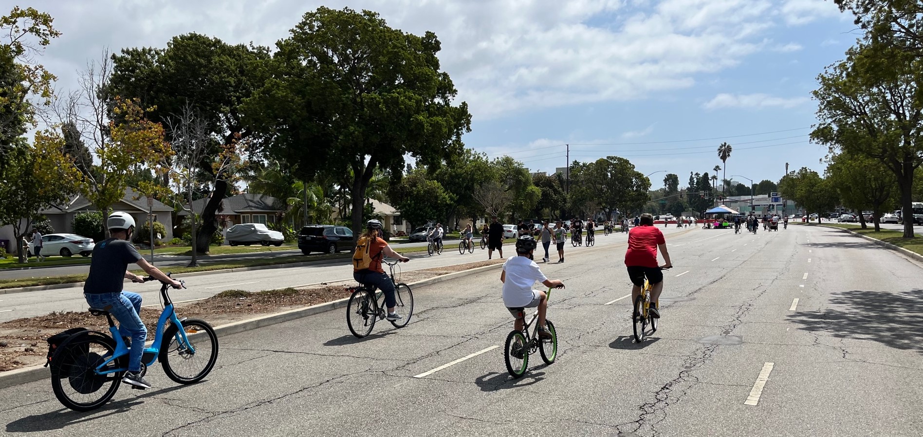 Yesterday’s Beach Streets route took place in the eastern portion of Long Beach, from the north end of Cal State University Long Beach to Spring Street. Long Beach used a similar route for their 2017 event. The pleasant, largely tree-lined, flat route is mostly wide arterial streets flanked by suburban housing, the university, and numerous commercial strips. As others have noted, it is a great place to ride, but not all that easy to get to by bike from other parts of Long Beach, including from the city’s Metro A Line light rail stations.